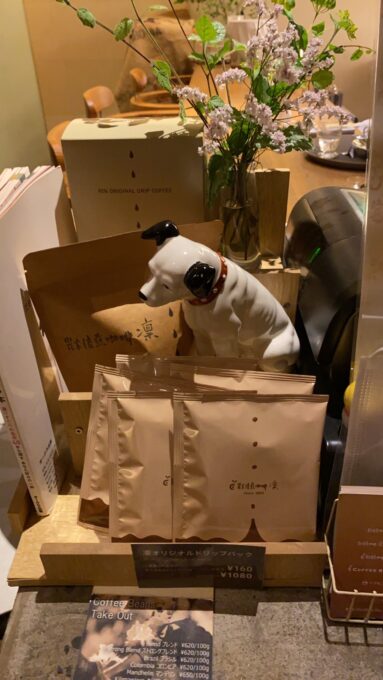 2003年に炭火で自家焙煎.凛 銀座四丁目本店がオープンした際、オープン記念として、このビクター犬をプレゼントしていただきました。が、、、、ニッパーと名づけたこのビクター件は、オープンから1年も経たず何処かへ旅に出てしまい、スタッフ一同懸命の捜索にも関わらず、ついに探し出すことができずスタッフは皆大きな悲しみに包まれました。